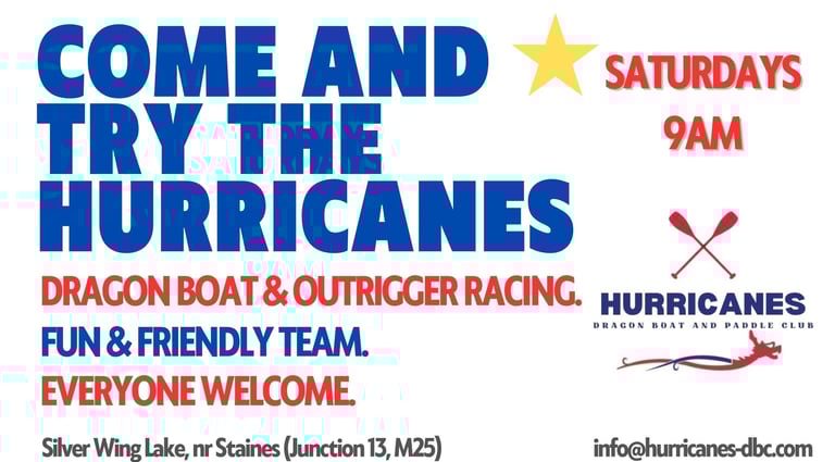 Hurricanes Dragon Boat and Paddling Club is a friendly, inclusive, yet competitive dragon boat and outrigger club based in Wraysbury, near Heathrow Airport. We race around the UK and internationally, welcoming people of all ages, genders, and fitness levels.